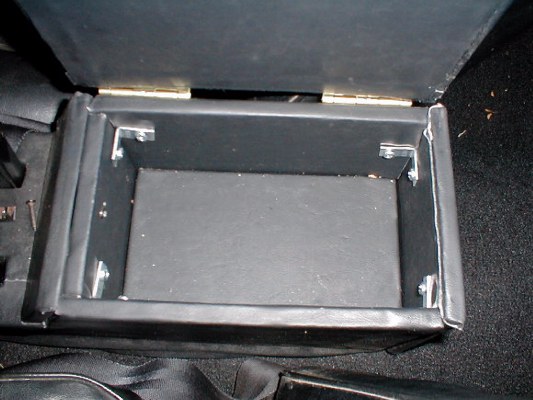 There is the whole thing. This project did not cost very much. Just some wood, small brackets, screws, cheapo cup holders, and the material. You could use anything you want to cover it with. For me it was better than spending $250 on a new one, and plus I wouldn't have a place for my cd player.